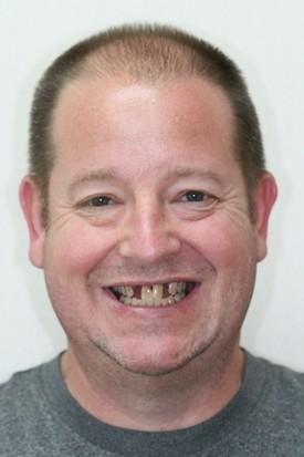 The Challenge: "T." was unhappy with his smile. He had twice tried Orthodontic treatment to straighten the crowding in his upper front teeth. Both times the Orthodontics had yielded unsuccessful results. We discussed the possibility of attempting Orthodontics again, but "T." wanted a quicker and, because of his past history, a more predictable result.