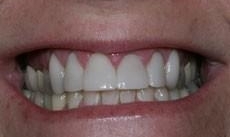 This way, if she felt she wanted a whiter result than the composite material could deliver, she had not invested as much time and money into the endeavor. Well, she loved the result and came back for a second one hour appointment to place four more composite bonded restorations. These photographs are of actual patients of Dr. Robert W. Boyle and were taken by Dr. Boyle or members of the Clarkson Dental Group staff. The photos have not been retouched or altered in any way.